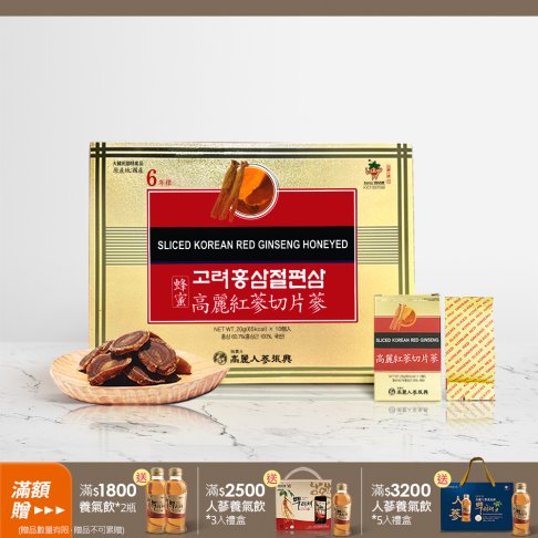 | 成份 | 紅蔘、果糖、蜂蜜。 ※ 頂級韓國產6年根高麗紅蔘。 |