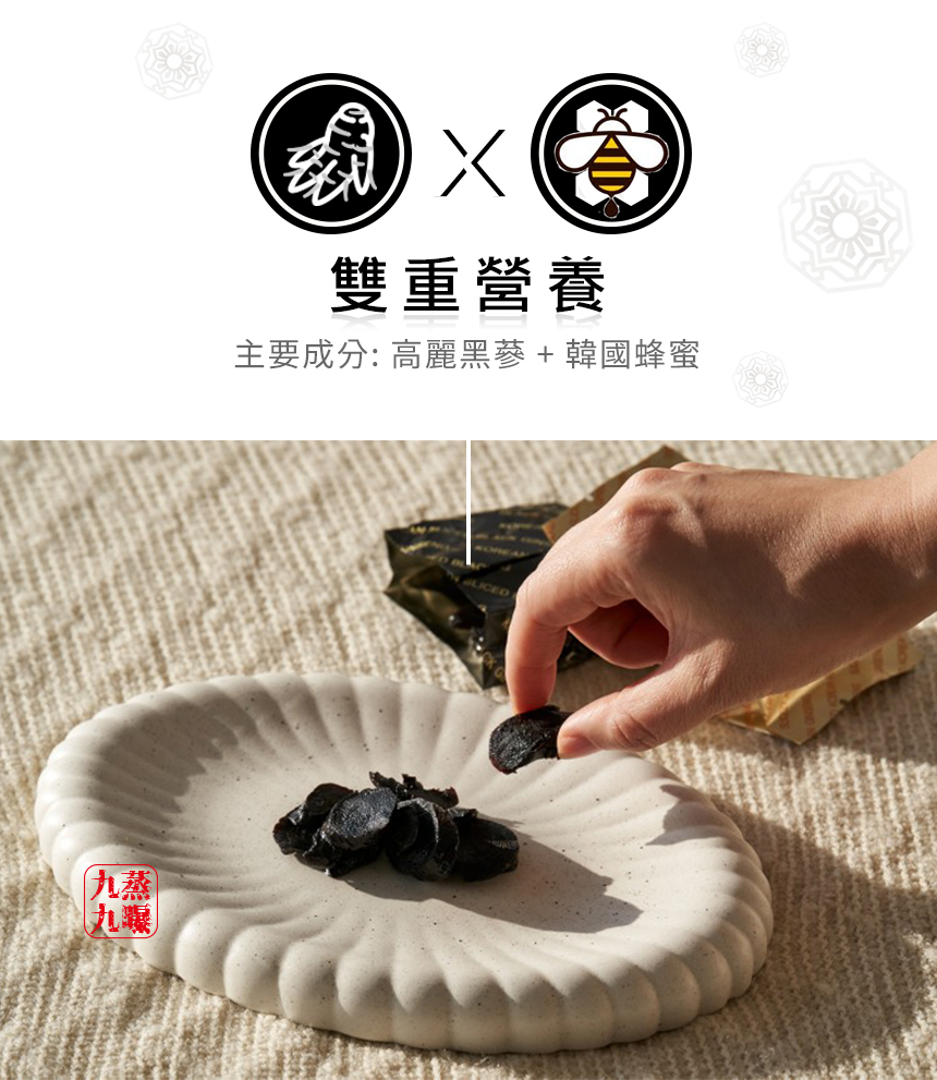 ¶ 採用蜂蜜浸漬,吃的到原型黑蔘,口感濃郁回甘