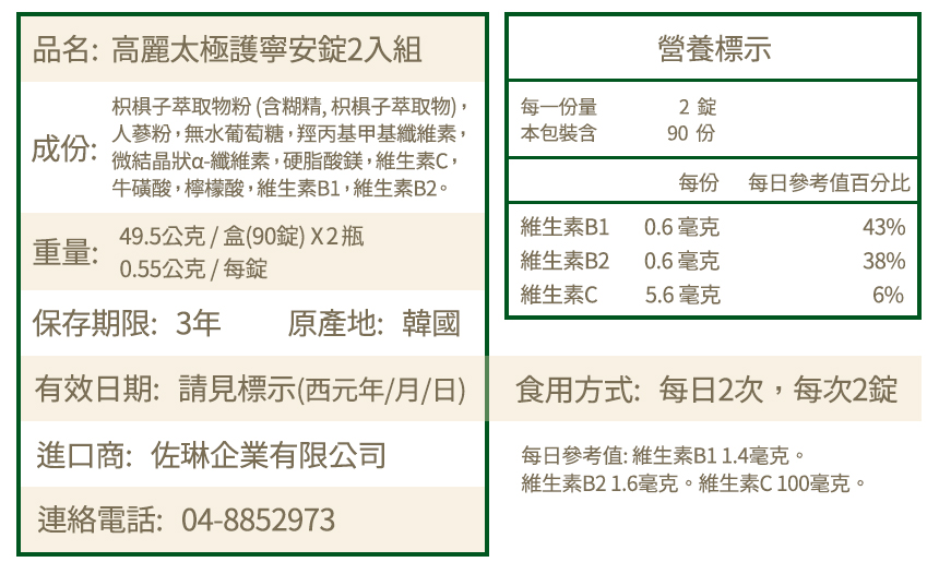 高麗太極護寧安錠 90錠*2瓶禮盒