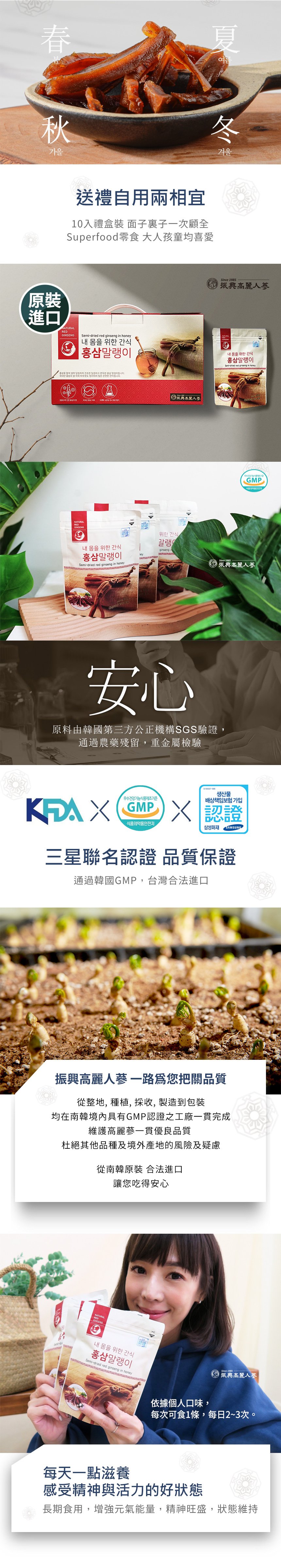 | 食用方式 | 依據個人口味,每次可食1~2條,每日2~3次。 (15歲以下份量請減半)。可單吃亦可泡茶。 |
