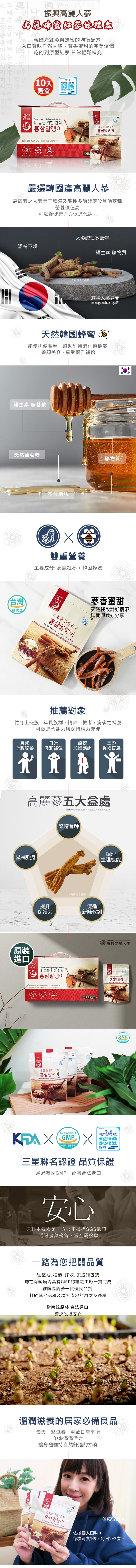 | 成份 | 紅蔘,蜂蜜。 |